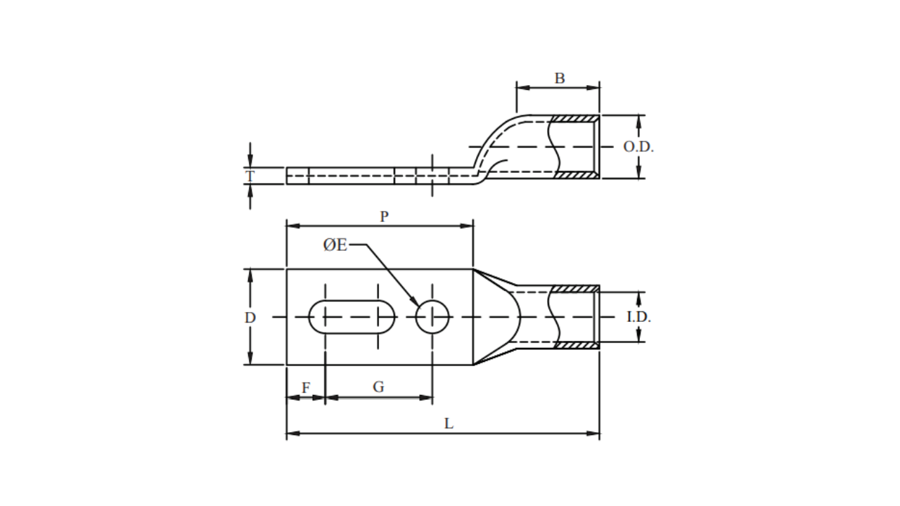 | Code | Conductor AWG | Conductor MM2 | Bolt Size | Stud Hole ∅E | Stud Hole Spacing | Dimensions | Color Code | ||||||